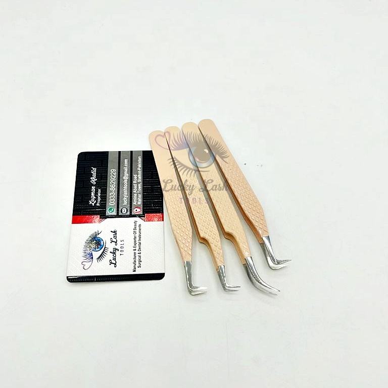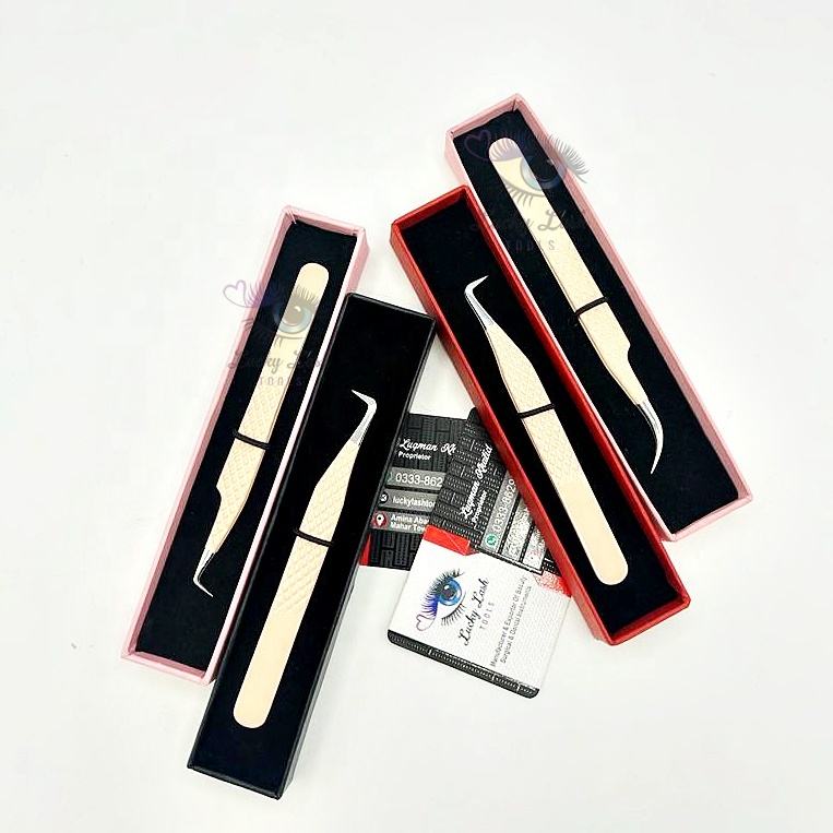 Pince à cils de précision en acier inoxydable en forme de botte mince à 90 degrés