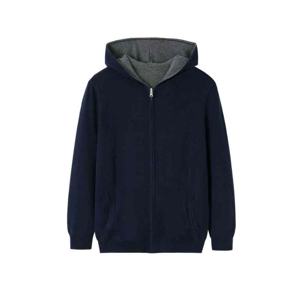 Personnalisé hommes Premium deux couches Interlock Zip up nouveau épais chaud 100% cachemire à capuche hommes