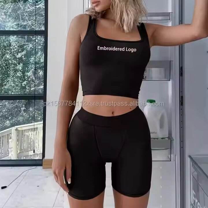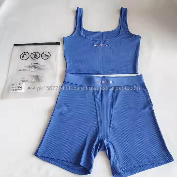 Vêtements de détente skinny à rayures personnalisées ensemble de vêtements de détente côtelés 2 pièces sans manches hauts courts shorts ensemble de vêtements de détente deux pièces ensembles de femmes