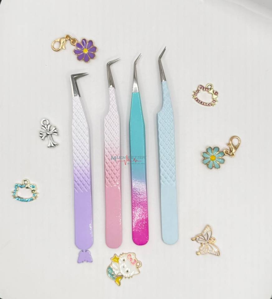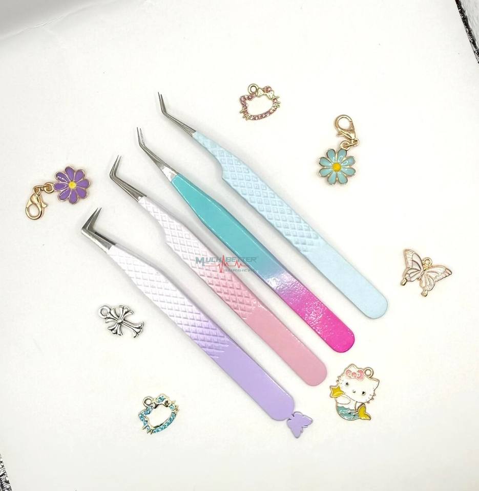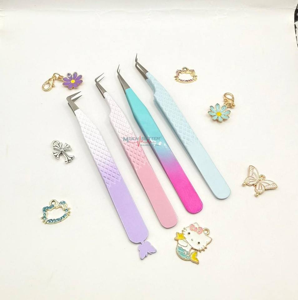 Pinces à cils personnalisées en forme de chat, de fruits et de fleurs, en acier inoxydable, pinces à cils fines à 90 degrés avec embout en fibre