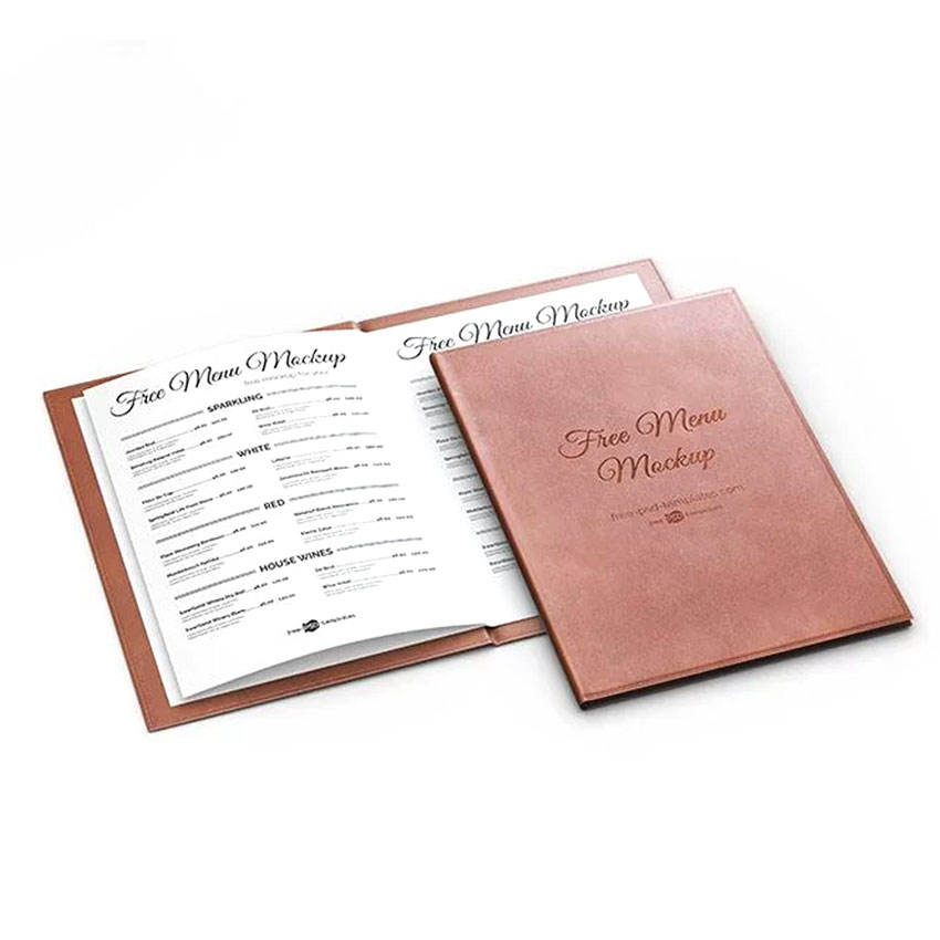 custom logo printed soft or hardcover restaurant leather menu binding