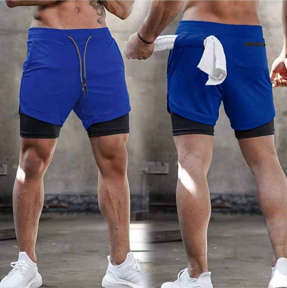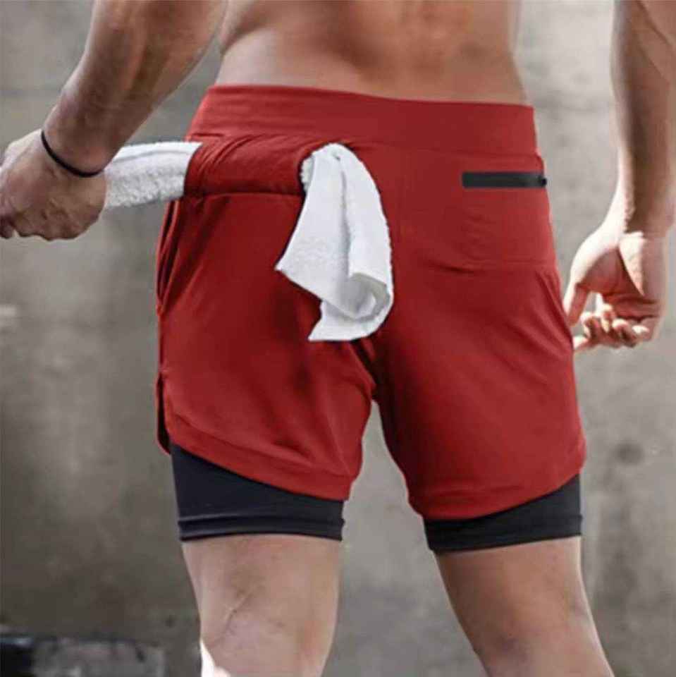 Shorts de sport décontractés 2-en-1 sur mesure, couleur unie, taille élastique, poche intérieure, 100 % polyester pour homme