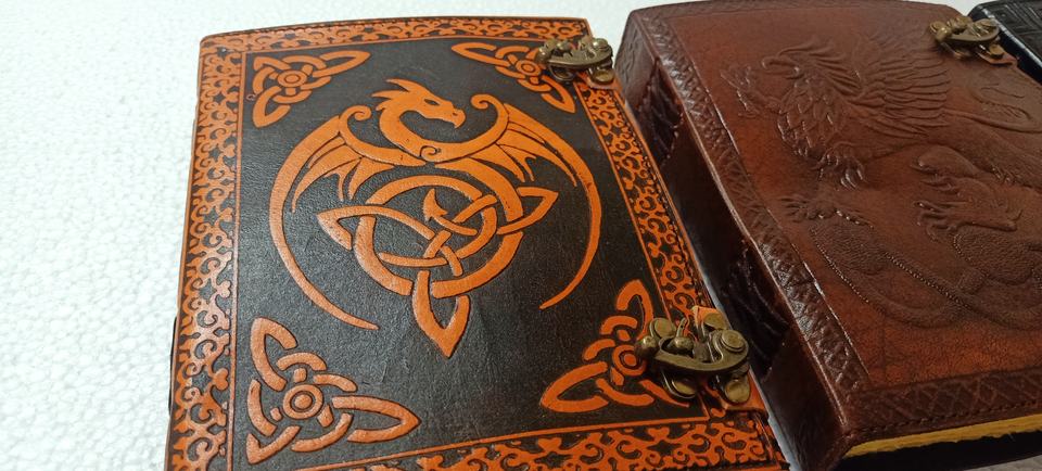 Journal en cuir gaufré dragon fabriqué à la main en agate sur mesure conçu pour combiner avec flair artistique. Idéal pour les cadeaux