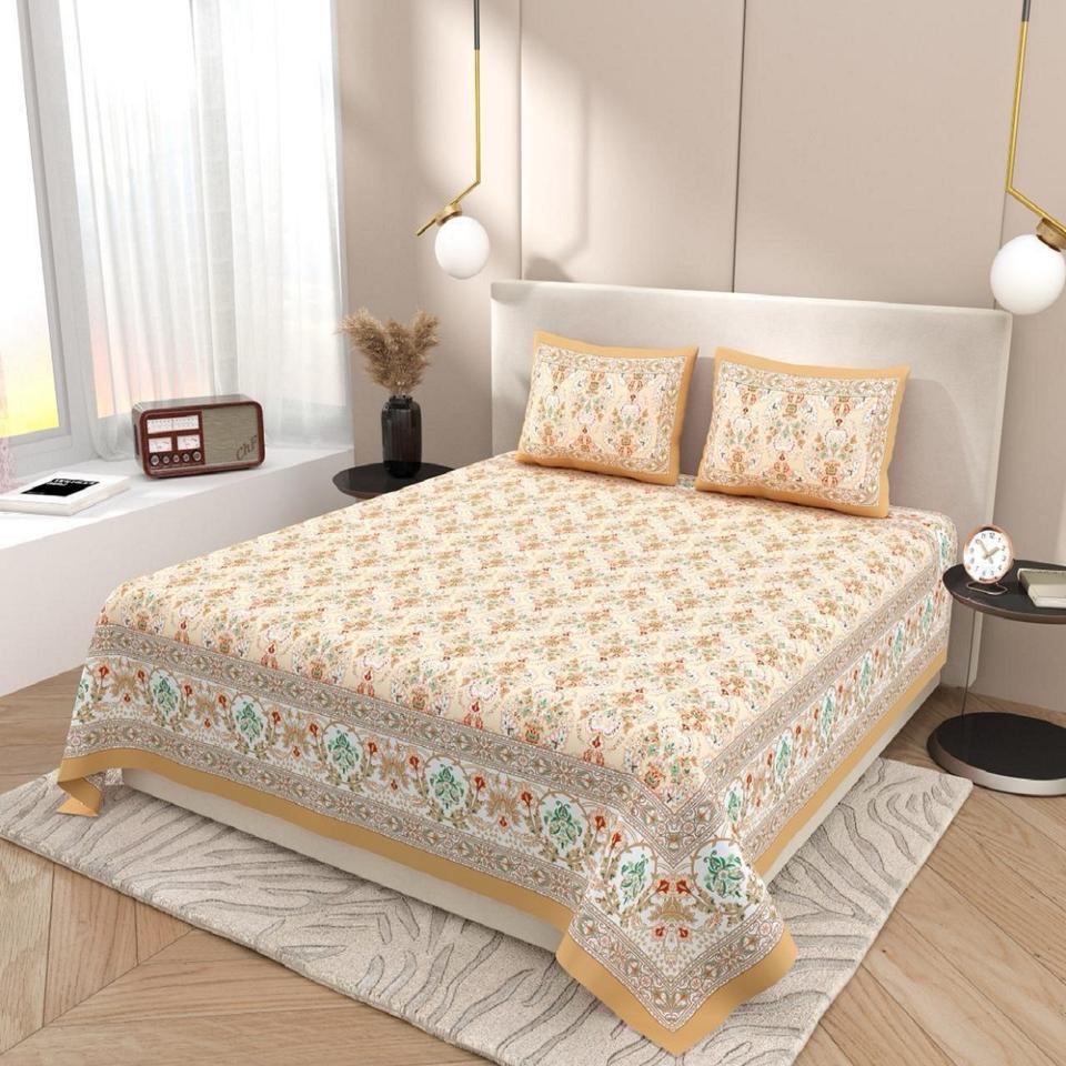 Drap de lit sur mesure élégant imprimé à la main avec des motifs floraux et géométriques complexes. Idle pour la décoration intérieure et les cadeaux
