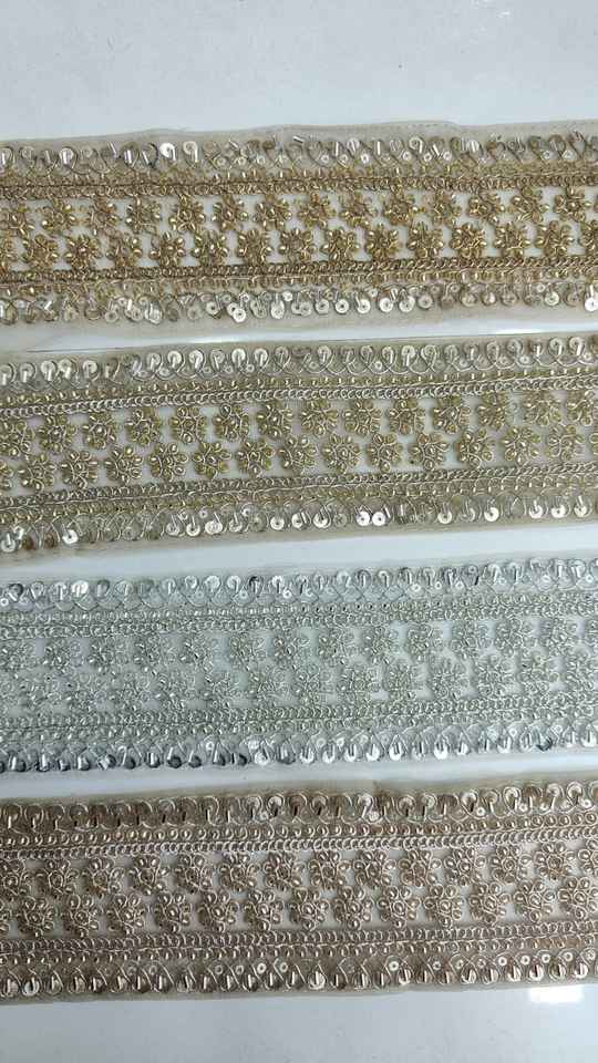 Lacets de travail en fil brodé sur mesure avec cinq options colorées en broderie de paillettes en largeur de 1.5 pouces à des fins de revente
