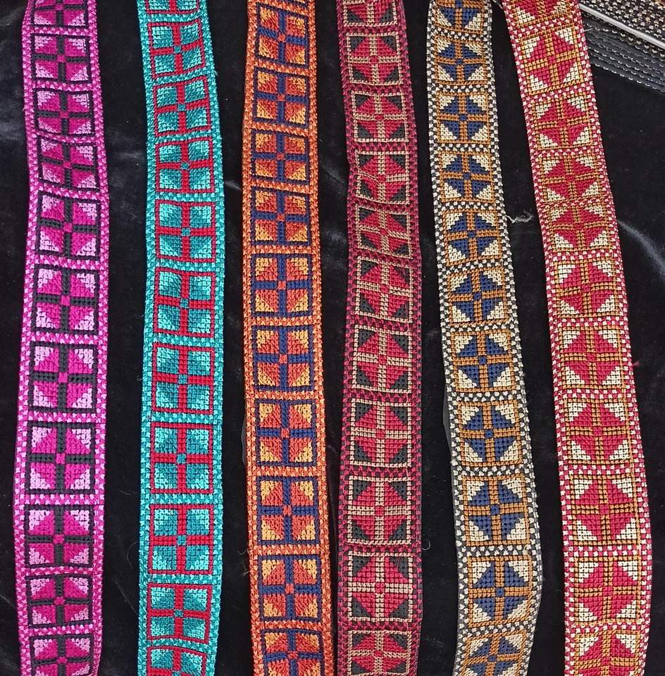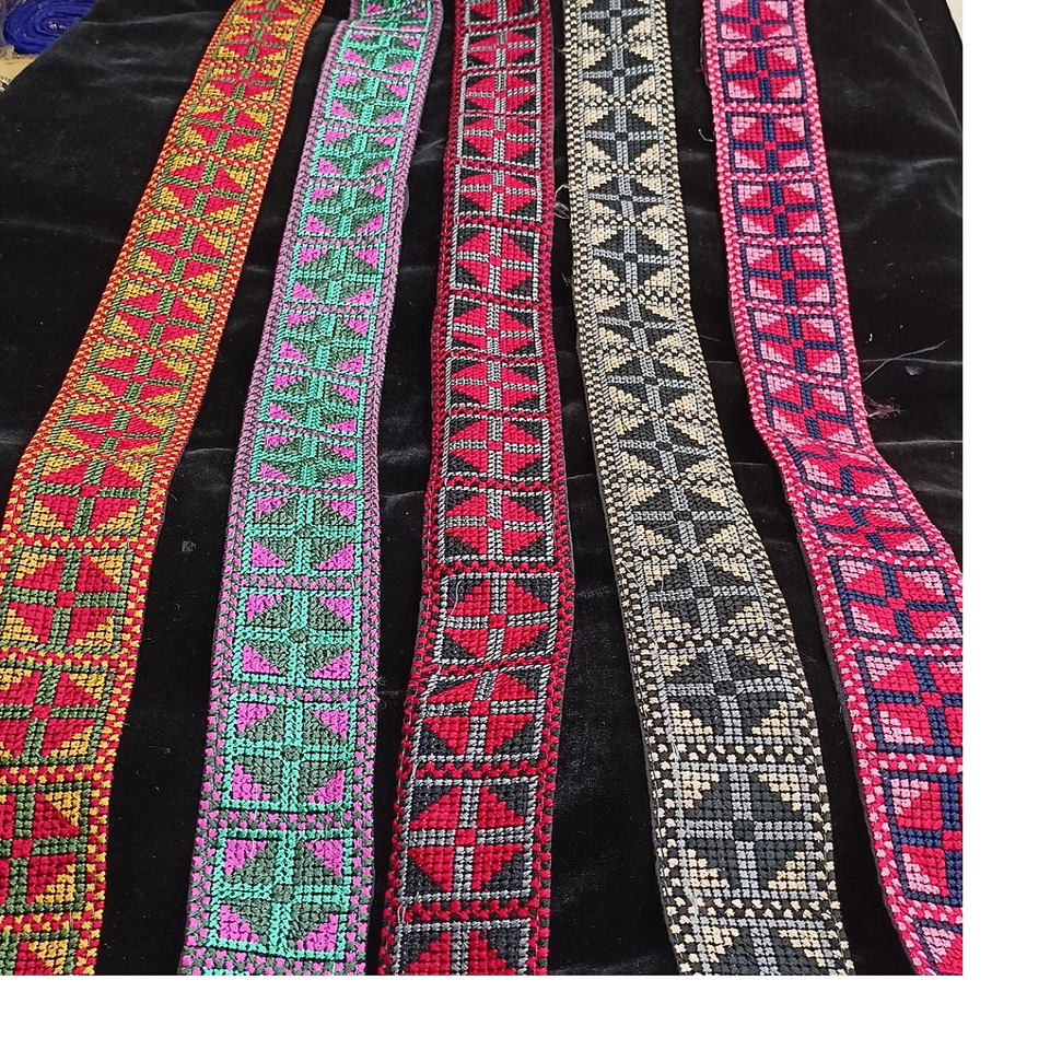 Lacets de travail en fil brodé sur mesure avec options multicolores en broderie géométrique de 2.5 pouces de largeur