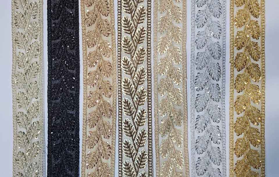 Rubans et lacets brodés à la machine en fil zari sur mesure en différents modèles et couleurs pour robes de mariée
