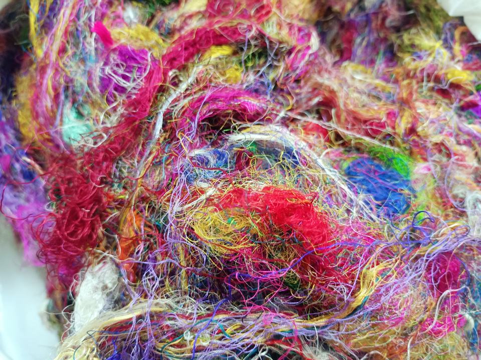 Fibre de soie sari multicolore sur mesure, fabriquée à partir de déchets de soie sari en plusieurs couleurs assorties, adaptée au bain