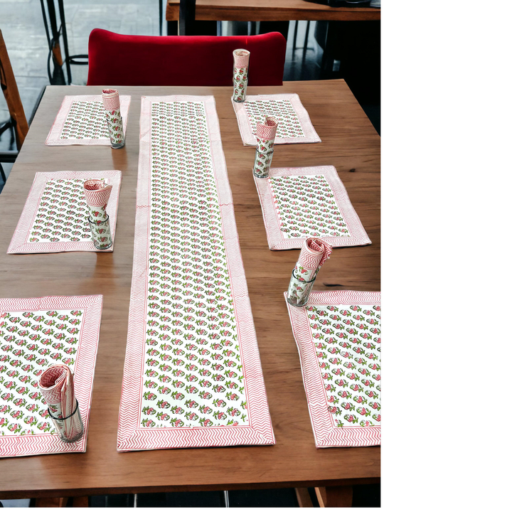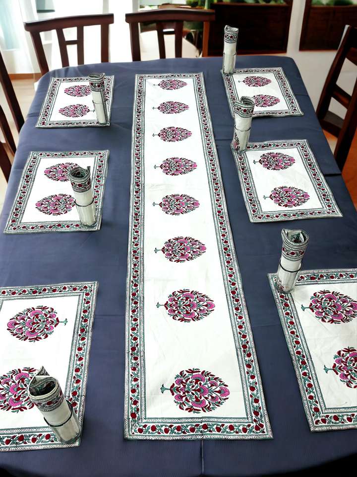 Chemins de table 100% coton sérigraphiés sur mesure avec tapis de table assortis, idéaux pour les magasins de textiles à la maison pour la revente