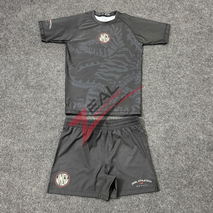 Personnalisé No Gi Set Rashguards Mma Shorts Ensembles Sublimation Impression Grappling Bjj Mma Shorts Rashguards Ensembles Fabriqué au Pakistan
