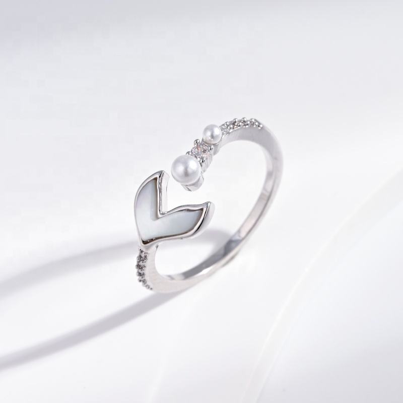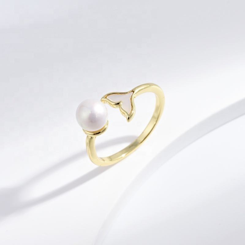 Bague de mariage personnalisée en argent sterling 925 avec perle de coquillage, plaquée or 18 carats, pierres précieuses, ajustable, mignonne, pas chère, pour filles