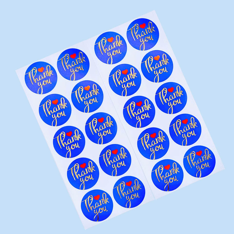 Nom du produit:Personnalisé cercle rond bleu couleur feuille d'or en relief merci autocollant