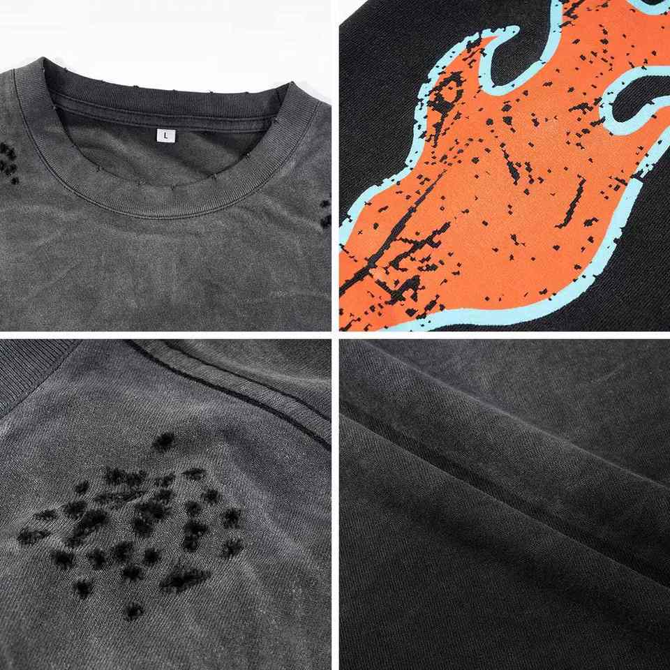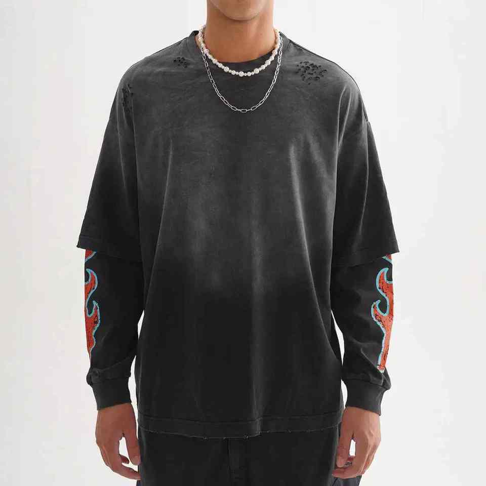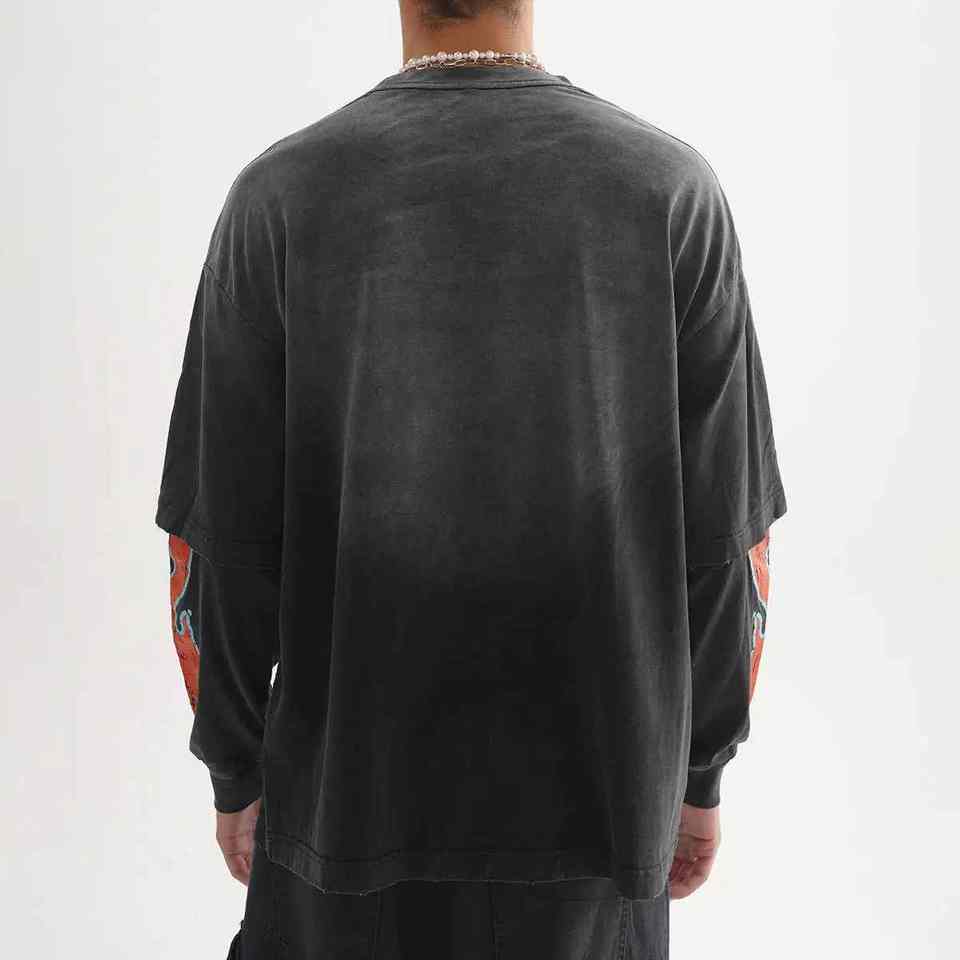 T-shirt homme à manches longues, coupe oversize, motif craquelé, effet délavé, couleur foncée, personnalisé