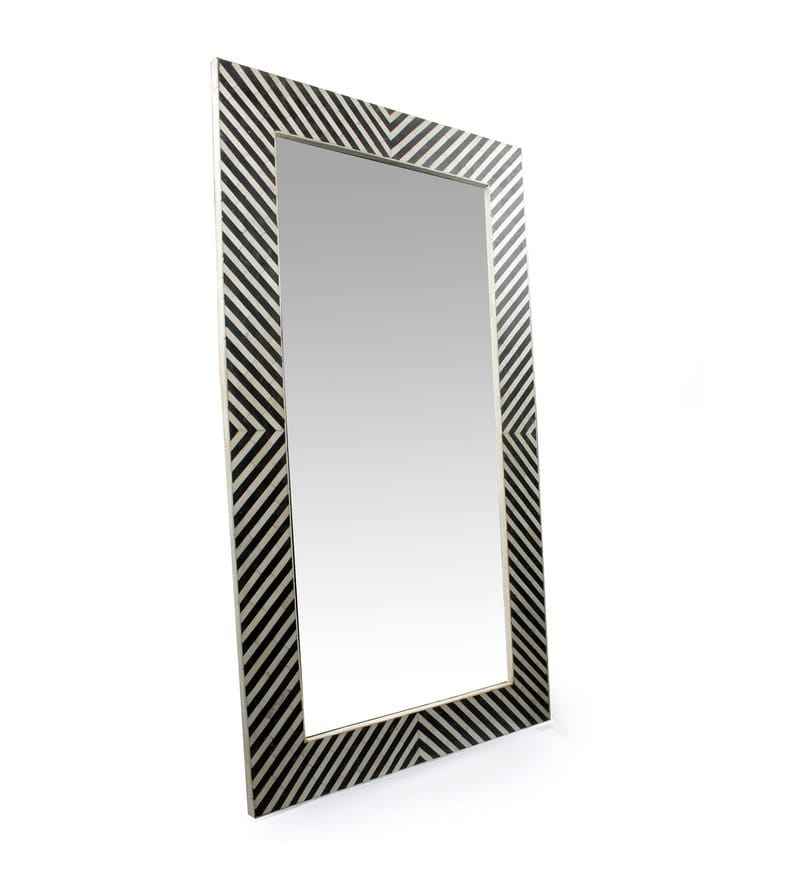 Luxueux cadre de miroir incrusté d'os en bois naturel 100% fabriqué à la main personnalisé d'Inde pour la décoration murale à la maison
