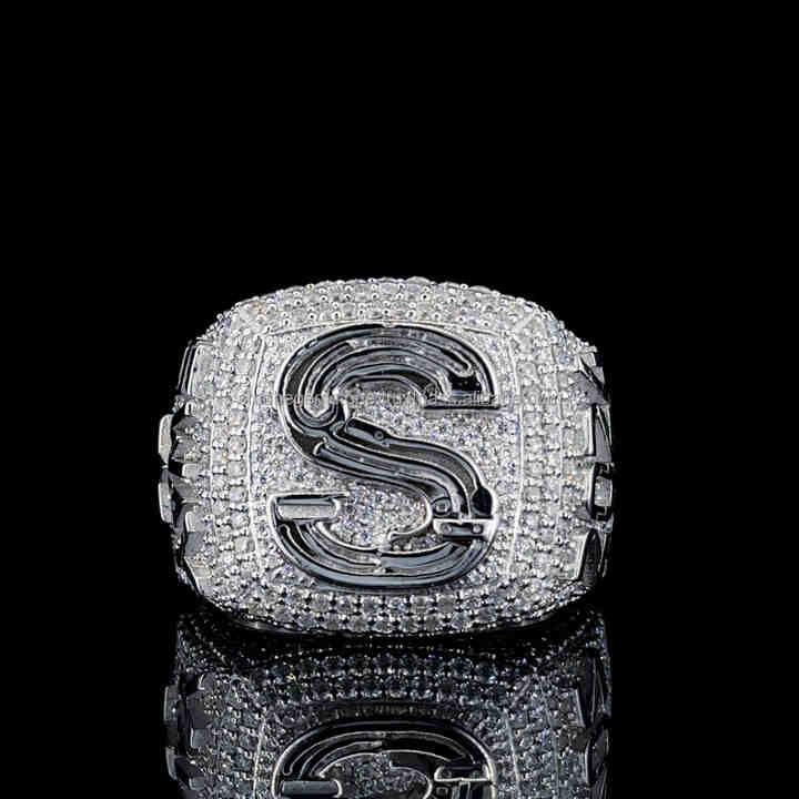 Bague Hip Hop Moissanite personnalisée motif 3D en argent sterling 925 avec bague de championnat avec lettre en diamant Moissanite