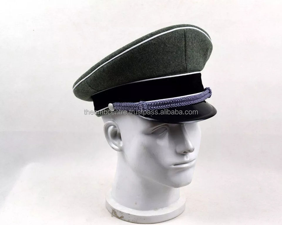 Casquettes uniformes personnalisées Hatgerman Casquette uniforme Couvre-chef argent brodé à la main Pakistan Casquettes personnalisées