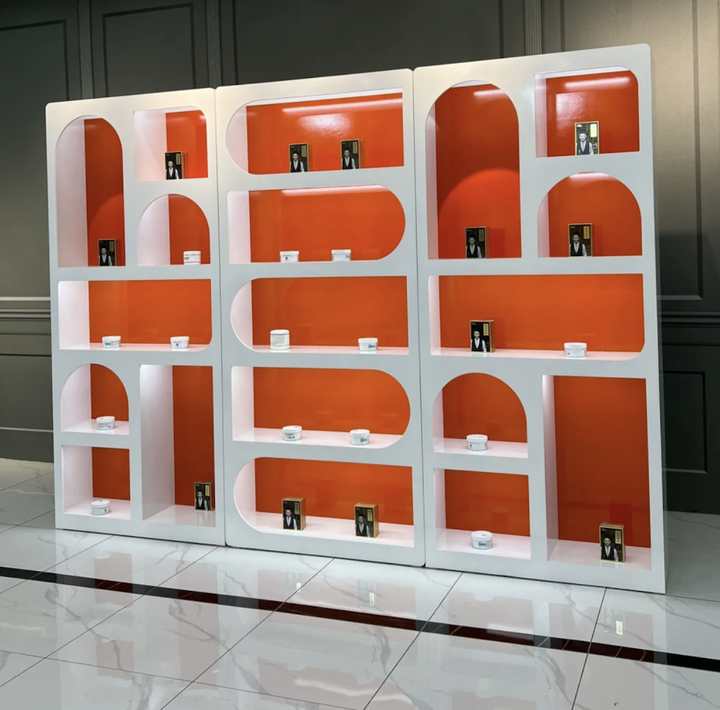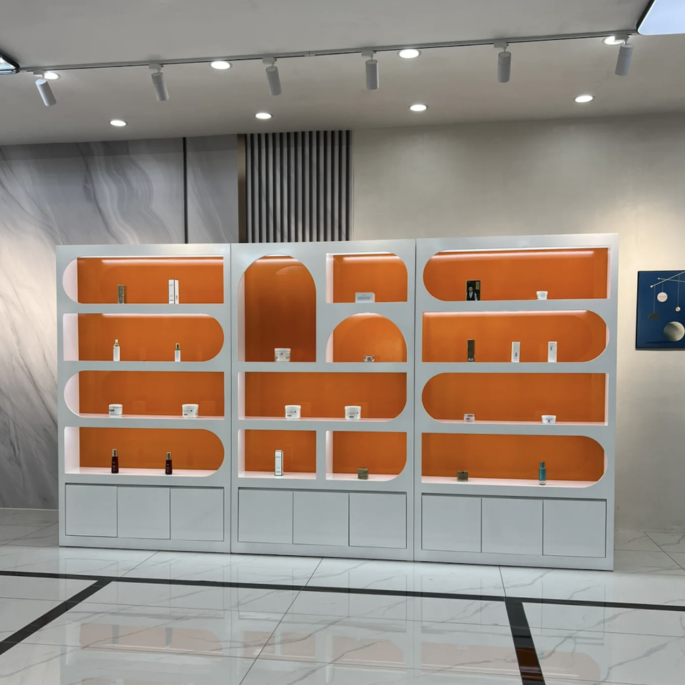 Présentoir cosmétique en forme d'extraterrestre peint moderne et simple personnalisé vitrine de magasin de parfums conçue spécialement