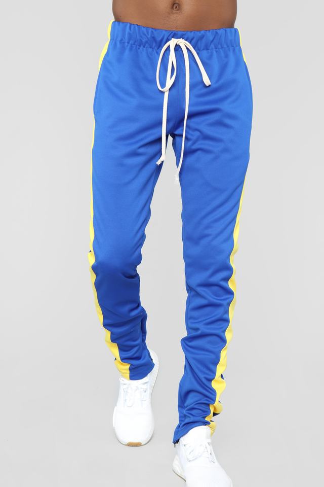 Pantalon de jogging coloré bleu uni pour hommes, personnalisé, nouveau design avec bande latérale