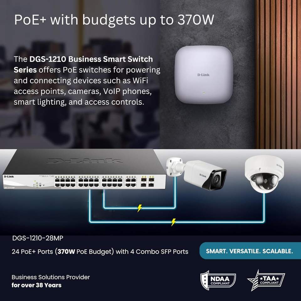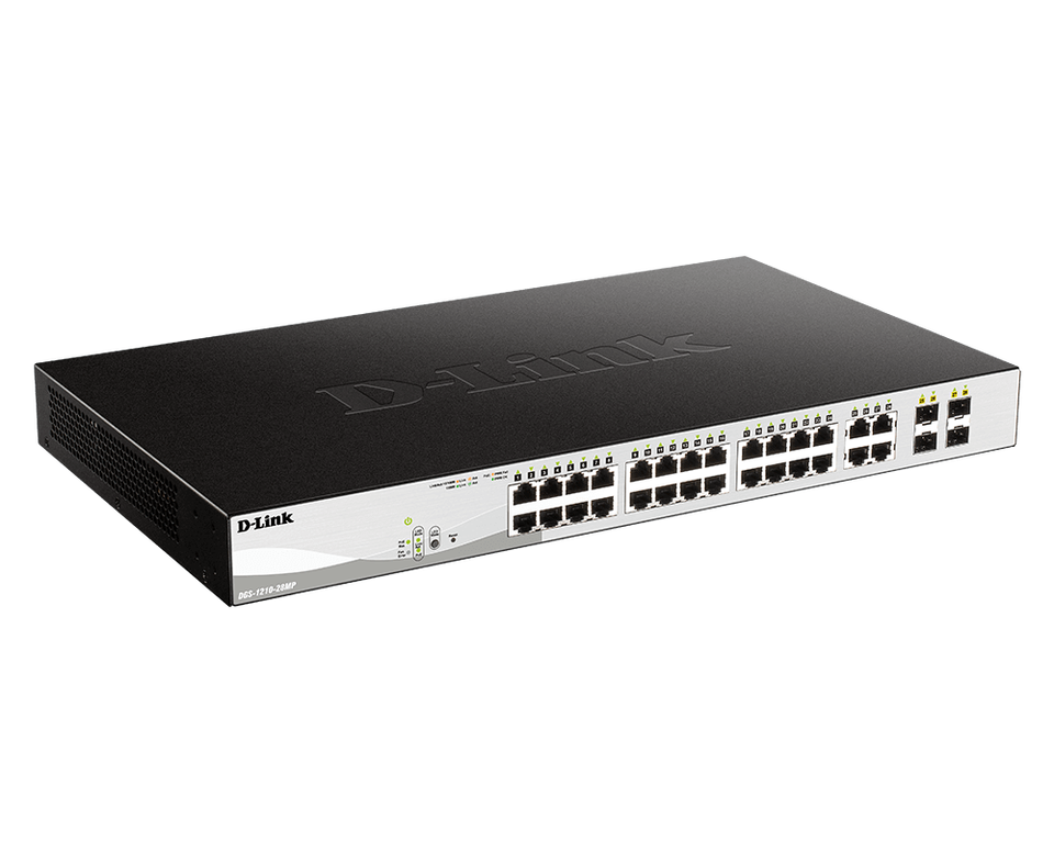 Commutateur PoE intelligent géré Gigabit D-Link DGS-1210-28MP 28 ports 2 Gbps 500M avec capacité de commutation, 24 ports PoE (370W) et 4 ports combo SFP