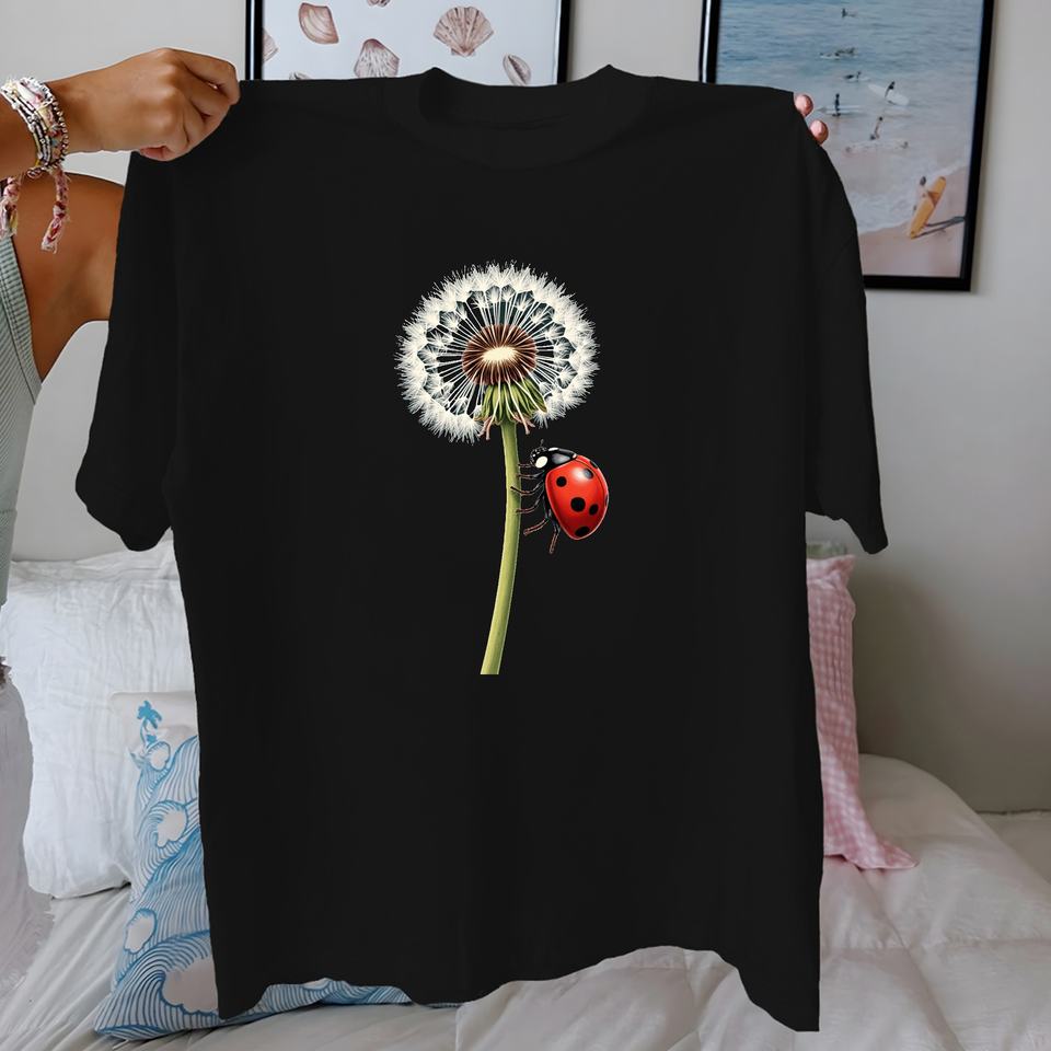 dandelion and ladybug Women's pure cotton comfortable T-shirt