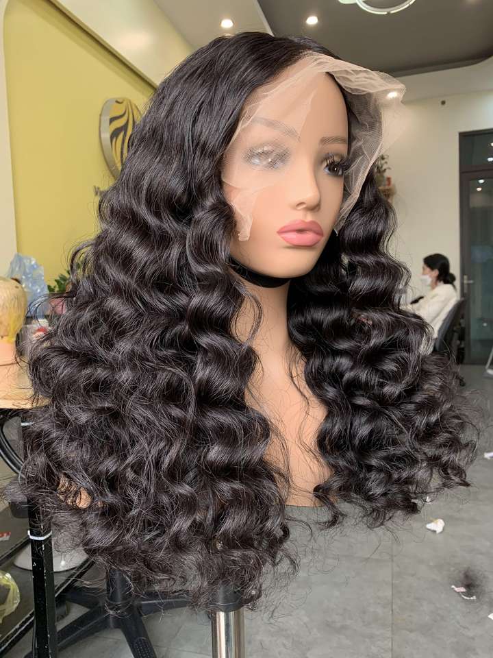 Lot de Cheveux Humains Remy Vietnamiens Bouclés Profonds et Ondulés avec Fermeture Frontale 13*4 Super Double Drawn Couleur Naturelle