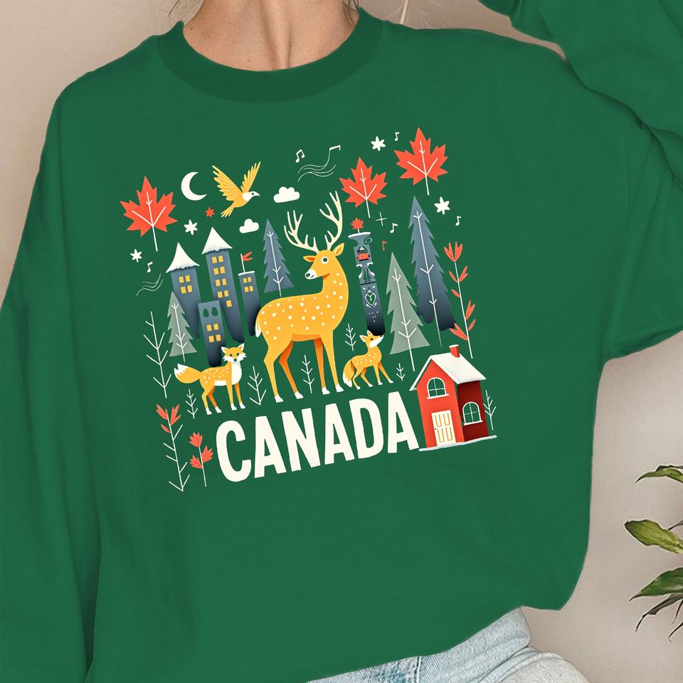 Deer CANADA Printed Casual Knitted Women's Sweatshirts with Cultural Symbols