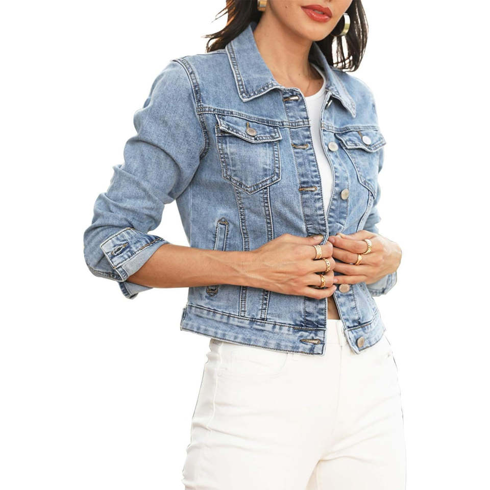 denim jacket Elegant Women Turn Down Collar Denim Jacket Women Loose Short Outerwear Women Denim Jacket Reasonable Price
