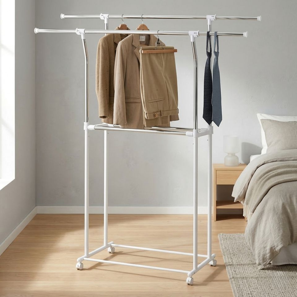 Présentoir à vêtements en métal à double barre EBay Organizer Factory Manufacturer's Home Housewares Storage Solution de stockage de linge