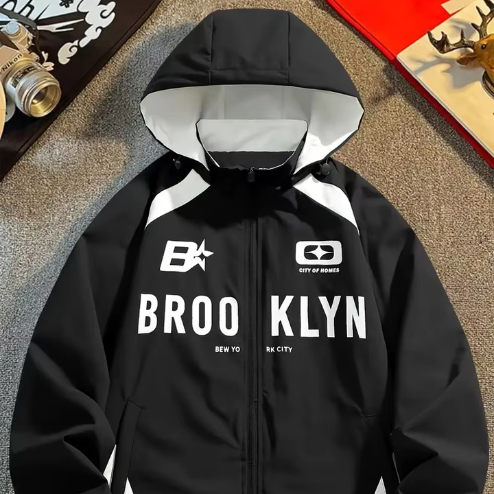 Dropshipping Veste à capuche légère coupe-vent inspirée de Brooklyn pour homme - Veste zippée décontractée et sportive avec bande latérale, manches longues