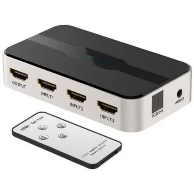 duplicador - dispositivo con 3 puertos hdmi, con entrada h-hdmi y salida de audio. material negro, ideal para conexiones