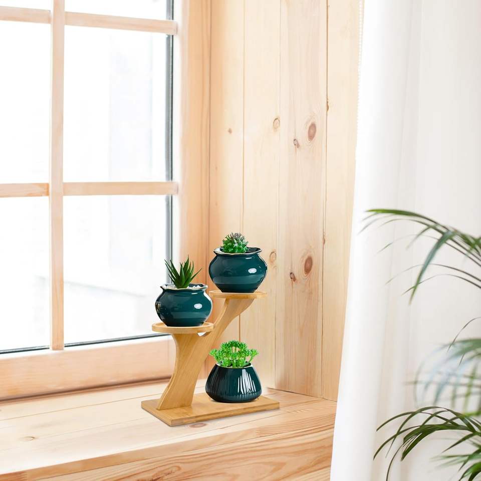 Bonsaï de bureau en bambou détachable facile à assembler sur un support de pot de fleur à trois niveaux