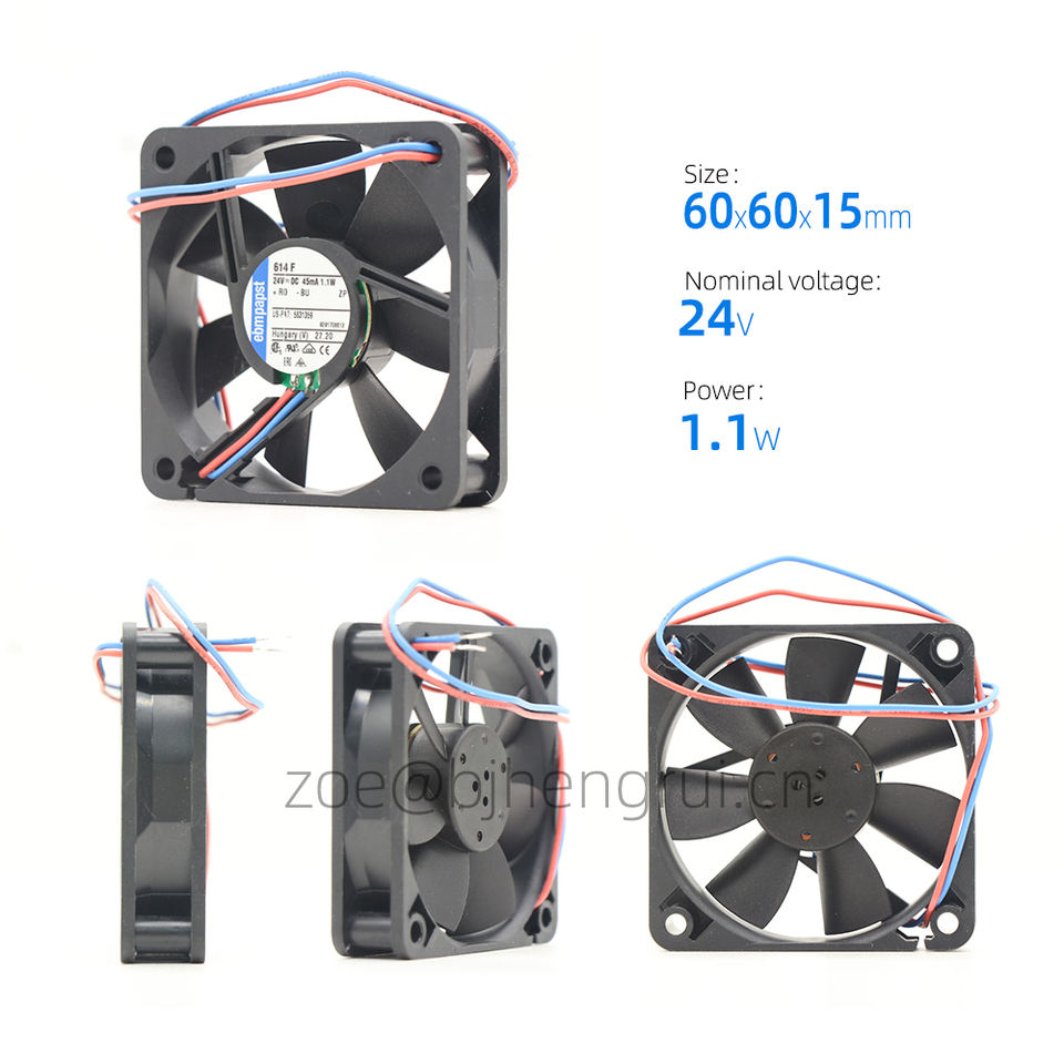 Ventilateur axial silencieux haut de gamme ebmpapst 614F 24V DC 1.1W 6015 60x60x15mm 6cm 3900RPM à roulement à manchon pour serveur et onduleur