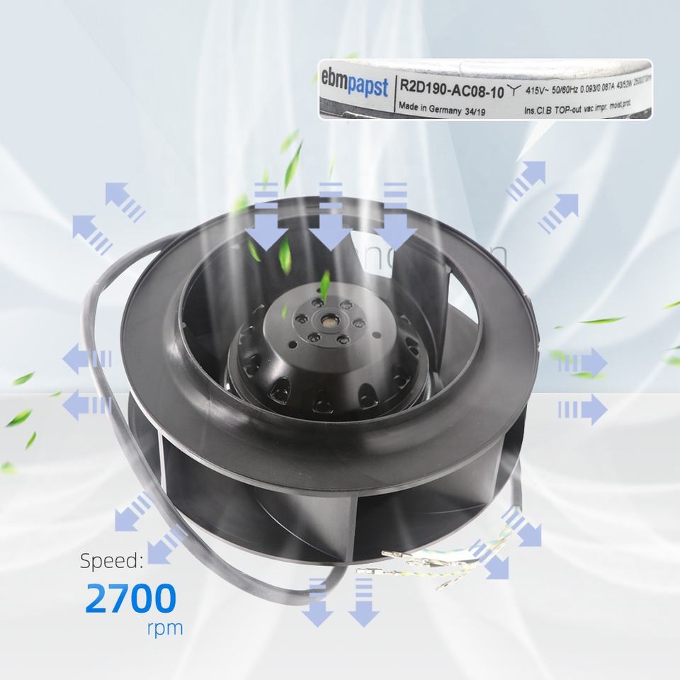 Ventilateur centrifuge de refroidissement pour robot Kuka, ebmpapst R2D190-AC08-10, 190 mm, 43 W, 52 W, 415 V, 0,93 A, 0,87 A, 2500 tr/min, IP44, roulement à billes