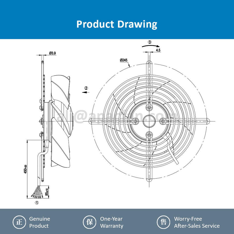 Ventilateur axial de refroidissement pour armoire électrique OEM ODM ebmpapst S2D200-BH18-01 200 mm 400 VAC 0,17/0,13 A 68/70 W 2600/2900 tr/min