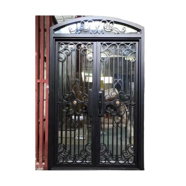 Portes d'entrée électroniques en verre frontal en fer forgé pour maisons porte battante design moderne extérieur charnières de porte pivotantes à coupure thermique