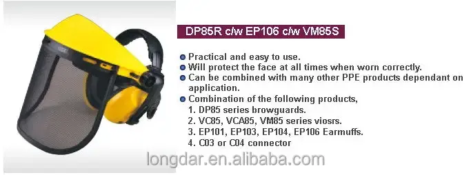 Produits:Cache-oreilles au-dessus de la tête et protecteur combiné de visière de bouclier facial moyen
