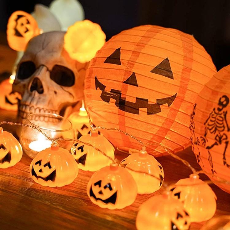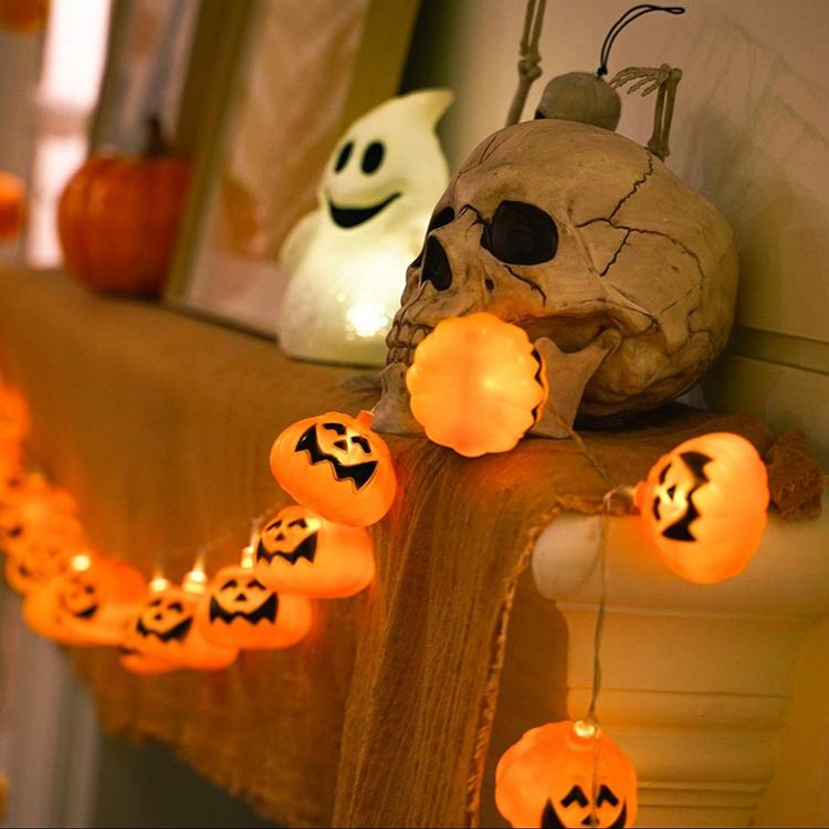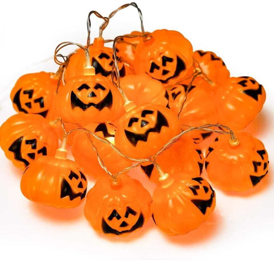 Lanternes lumineuses LED pour l'intérieur, alimenté par batterie 3AA, lumière féerique, Halloween, citrouille, amusantes, décoration, 5m et 16 pièces