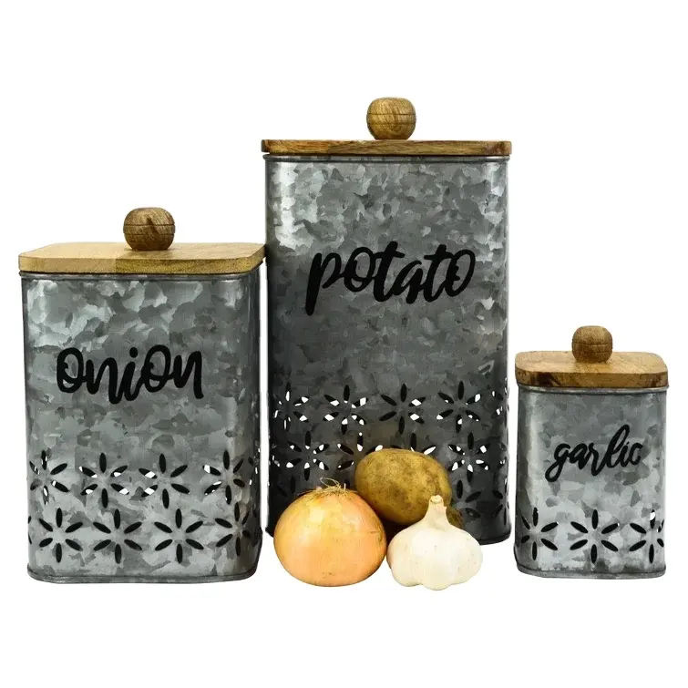 Ensemble de 3 bidons de Style rustique, look élégant, top des ventes, en métal galvanisé et en bois