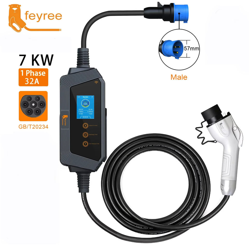 Chargeur EV portable intelligent GBT 7 kW Feyree, 32A, câble de charge rapide EVSE, chargeur de véhicule électrique monophasé avec contrôle par application WIFI