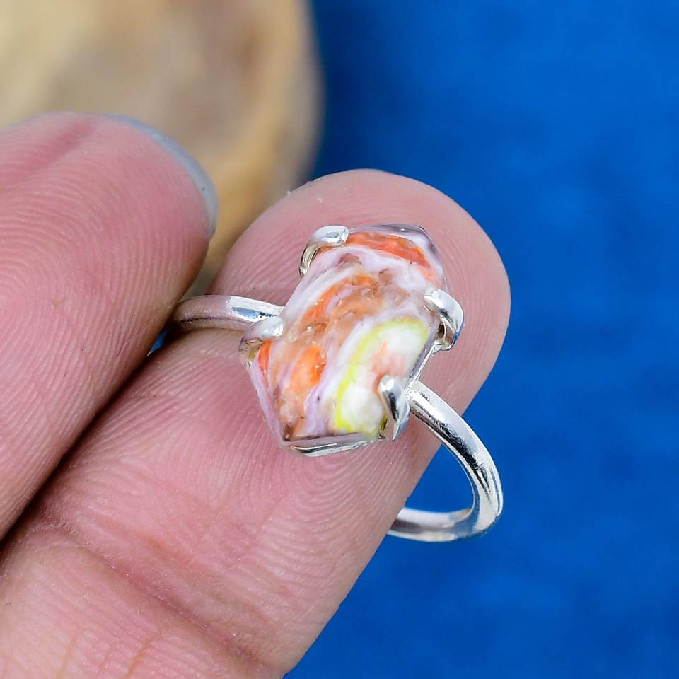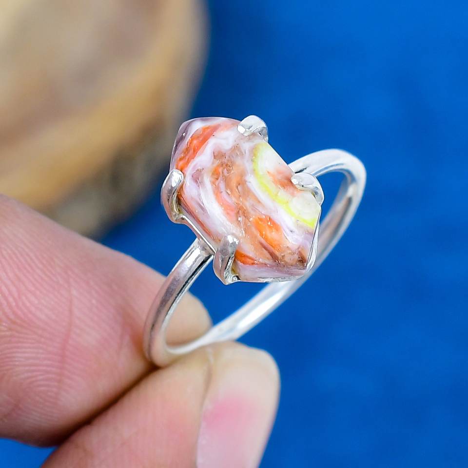 Bague en argent sterling 925 avec pierre précieuse en forme d'hexagone d'huître rose naturelle