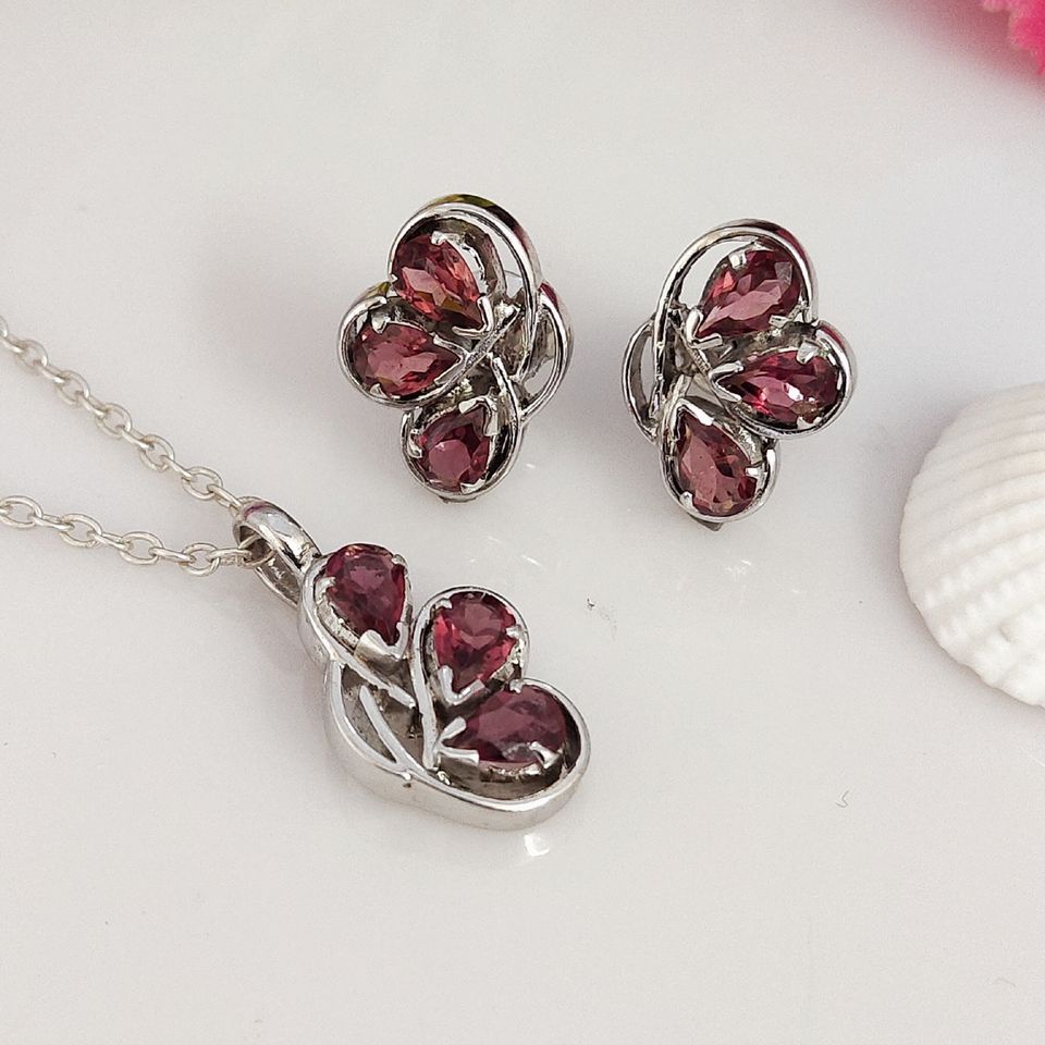 Ensemble de bijoux à motif floral, ensemble de bijoux en rhodolite naturelle, argent sterling 925, fabricant de bijoux sur mesure