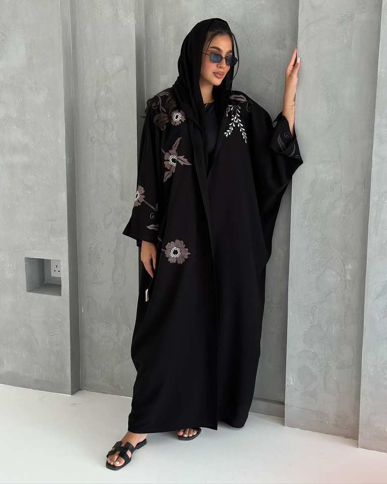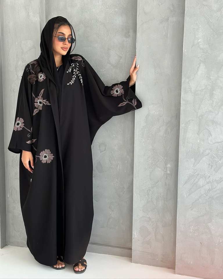 Handmade Black Silk Long Sleeve Anti-Wrinkle Abaya Beautiful White Embroidery Traditional Muslim Prayer Wear for Women Adults
