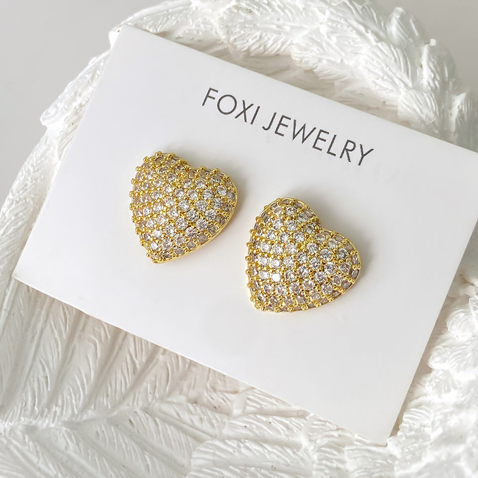 Nouvelles idées de produits foxi, micro-zircon, fil, cercle géométrique, coréen, plaqué or 18 carats, matériau en cuivre, boucles d'oreilles en forme de cœur pour femmes