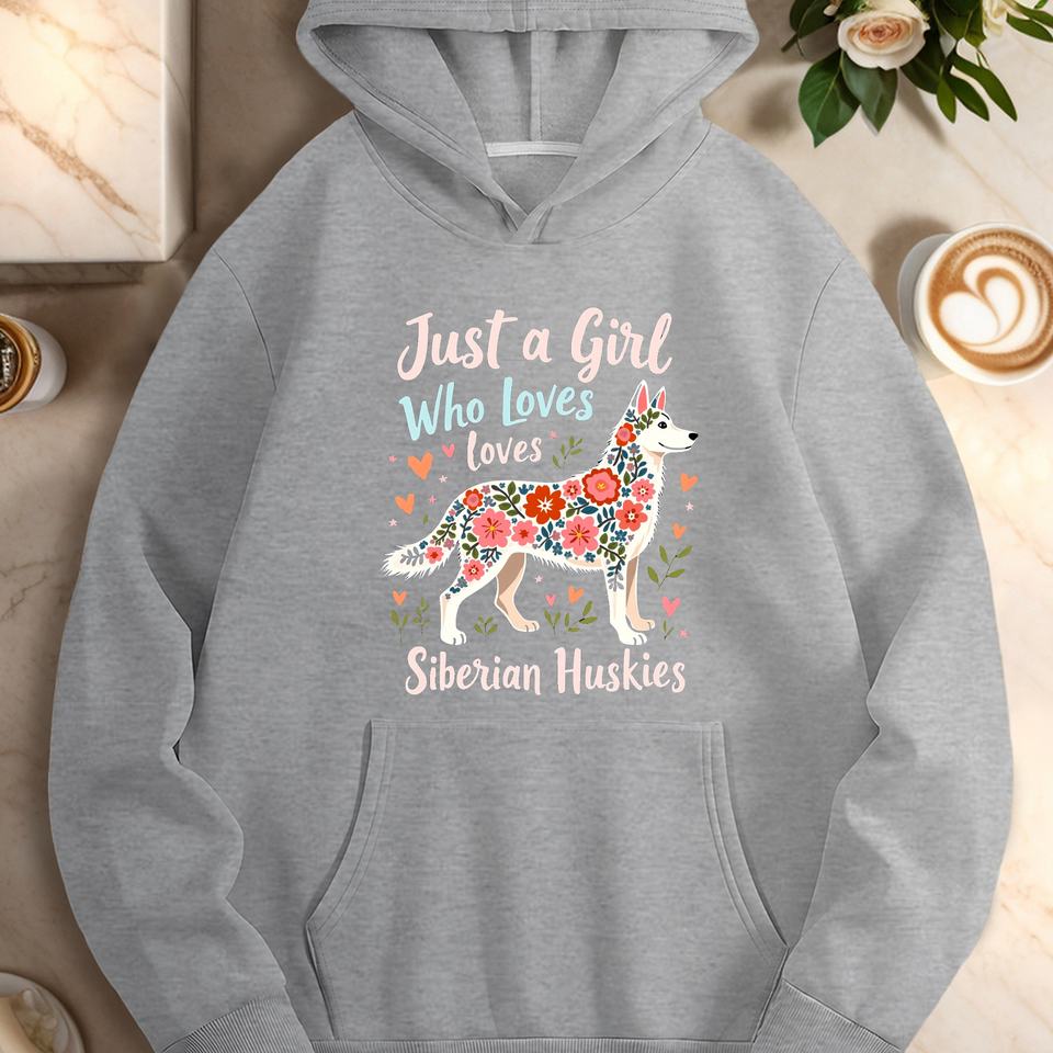 Women's Casual Knitted Printed Hoodies with Huskies Design