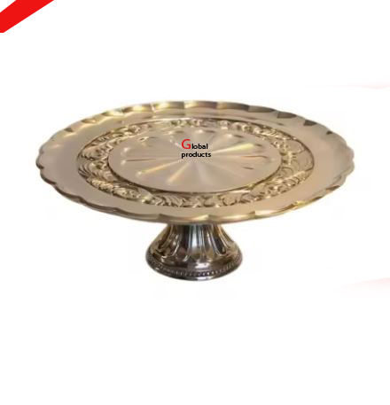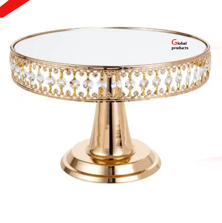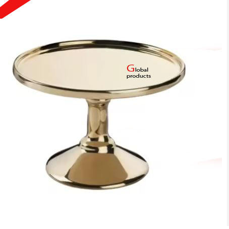 glossy look golden finished metal round shape cake stand for hotel restaurant and bar