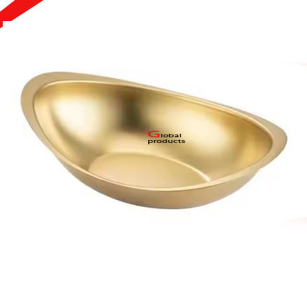 glossy look golden finished round shape metal stainless steel chocolate and dessert serving bowl for hotel restaurant and bar