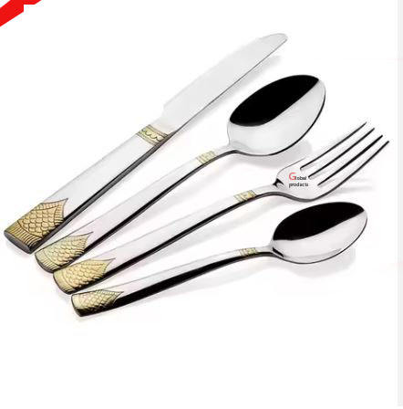 good quality silver finished metal golden handle design cutlery for hotel restaurant and bar