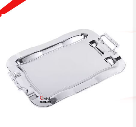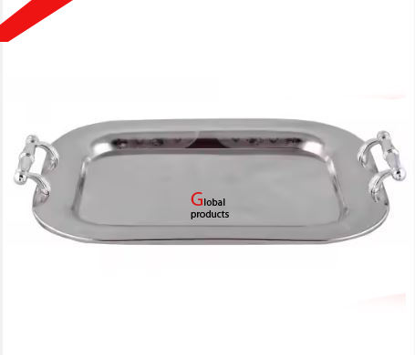 Plateau de service en acier inoxydable en métal fini argenté de bonne qualité pour le restaurant et le bar de l'hôtel