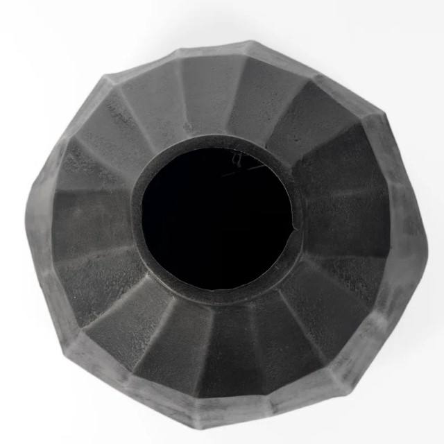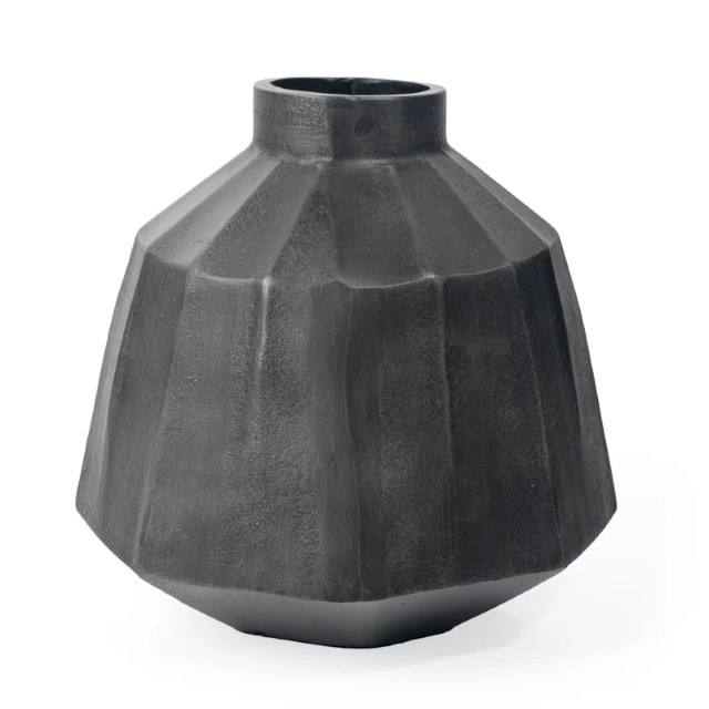 Handmade Gray Metal Round Decorative Vase with Geometric Design and Organic Stripes Gray Vase Modern Vase Table Living Room