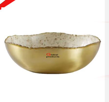 great quality round shape metal stainless steel serving bowl with golden stand for hotel restaurant and bar